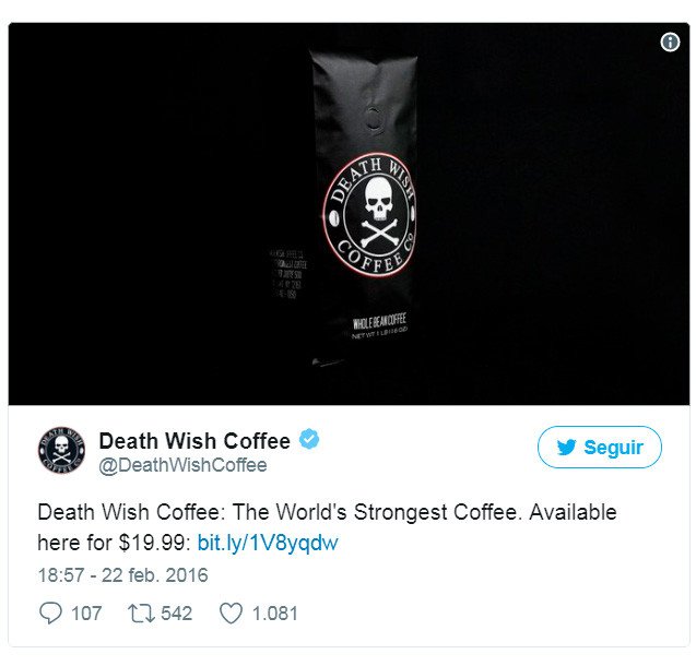 El 'Death Wish' ('Deseo de Muerte') fue promocionado como un orgullo de la compañía del mismo nombre, que aseguró fabricar "el café más fuerte del mundo" (un sitial disputado por el llamado 'Black Insomnia', que contiene como mínimo 702 mg de cafeína por cada 355 ml).