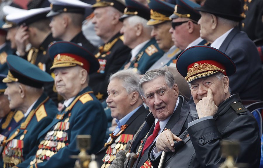 El presidente de Rusia, Vladímir Putin, ha saludado a los veteranos de la Gran Guerra Patria que presenciaron el desfile en primera fila.