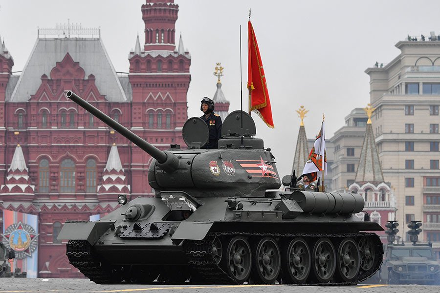 Como ya es tradición, la parte armamentística del desfile ha sido abierta por uno de los símbolos de la Segunda Guerra Mundial, el legendario tanque soviético T-34, cuyas unidades entraron en Berlín en 1945.
