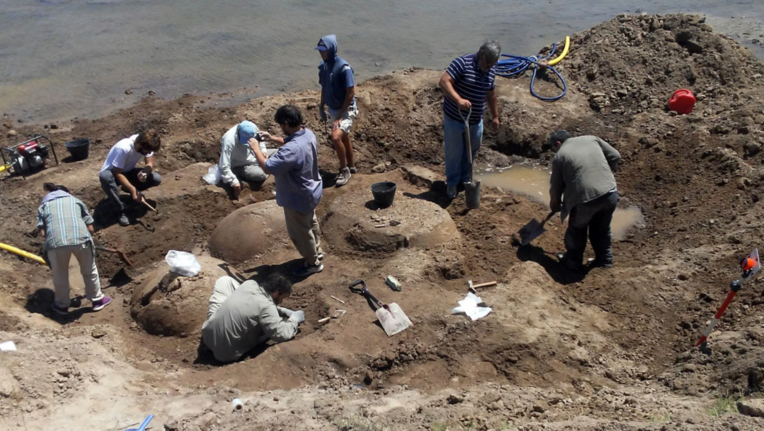 Los animales prehistóricos encontrados "están en posición de vida y alineados hacia el oeste", señaló Pablo Messineo, arqueólogo e investigador del Conicet.