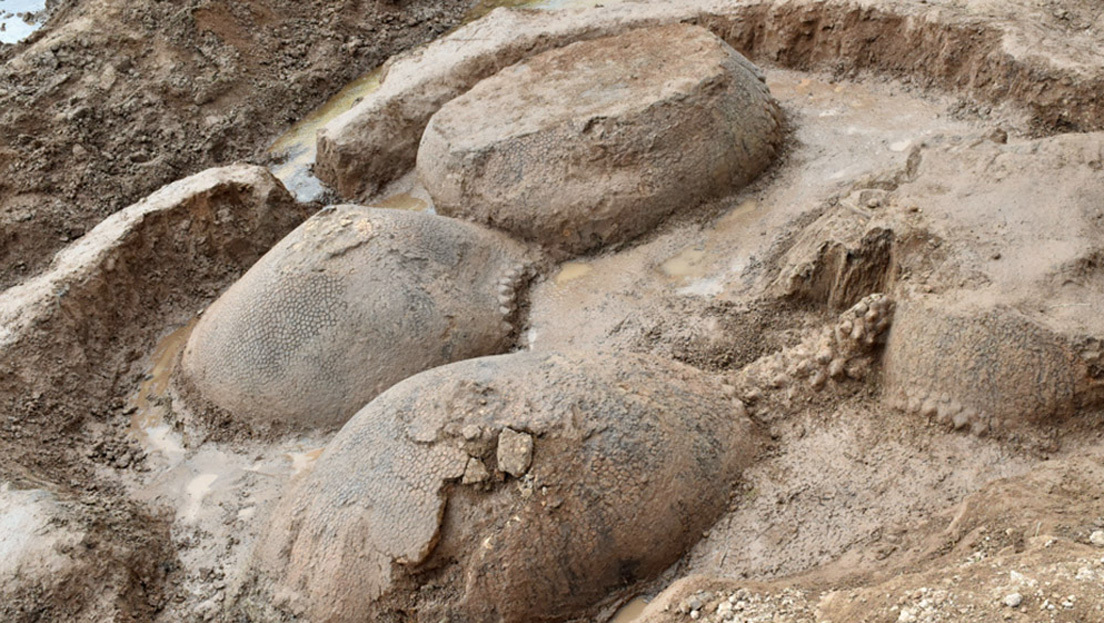 Los restos fosilizados de cuatro gliptodontes —un gran mamífero herbívoro acorazado emparentado con los armadillos y actualmente extinto— han sido descubiertos en el lecho de un arroyo en el partido bonaerense de Bolívar, Argentina, por un granjero.