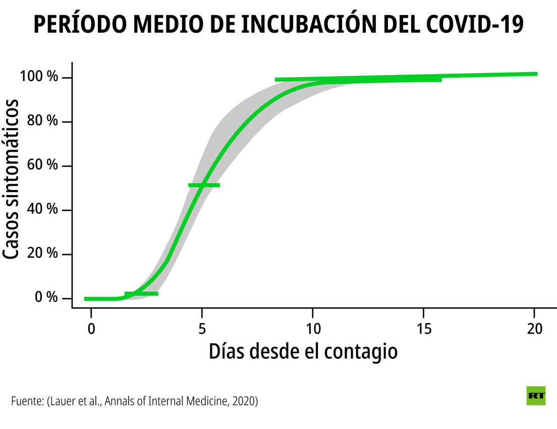 Un equipo de investigación liderado por expertos de la Universidad de John Hopkins (EE.UU.) ha calculado que el período de incubación promedio —esto es, el tiempo entre el momento de la infección y la manifestación de los primeros síntomas— para el covid-19 corresponde a 5,1 días.