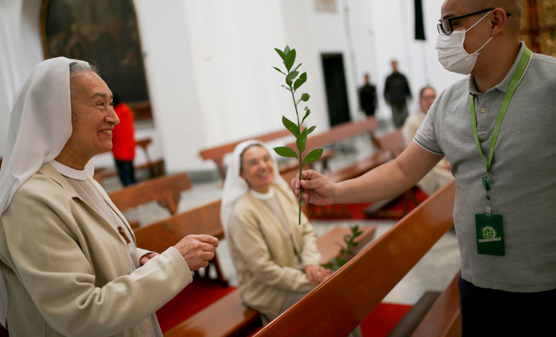 Entretanto, el 5 de abril ofició la misa de Domingo de Ramos, que conmemora la entrada de Jesucristo en Jerusalén y da inicio a la Semana Santa. Esta vez lo hizo en el interior de la basílica de San Pedro y no en la plaza vaticana, como es habitual. Fue la primera vez que se hacía esta celebración sin público.