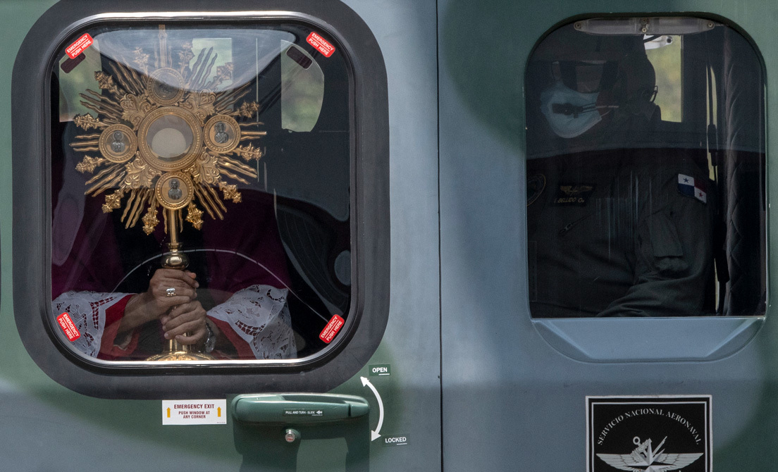 Una acción similar hizo el pasado domingo, por la tradicional ofrenda de ramos, el arzobispo de Panamá, José Domingo Ulloa. El sacerdote subió a un helicóptero junto a un busto de la Virgen Santa María La Antigua, patrona del país y sobrevoló la capital.