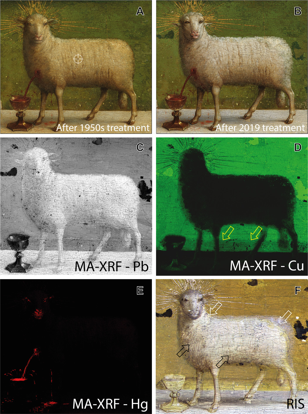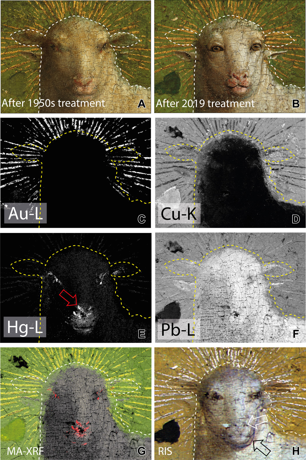"En conjunto, estos rasgos faciales indican que, en comparación con la cara sobrepintada del restaurador del siglo XVI, el cordero de Eyck tenía una cabeza más pequeña con una expresión distintiva", explicó Geert Van der Snickt, profesor del Departamento de Conservación y Restauración de la Universidad de Amberes.