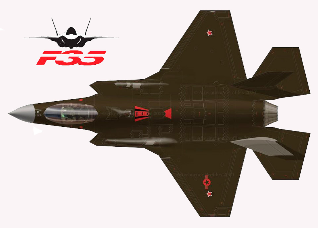 Para una mayor verosimilitud, las aeronaves F-35 llevarán estrellas rojas en las alas, el signo distintivo de las Fuerzas Aeroespaciales Rusas. En el ala izquierda, esta estrella figura junto a una estrella en un círculo, el emblema de la Fuerza Aérea norteamericana.