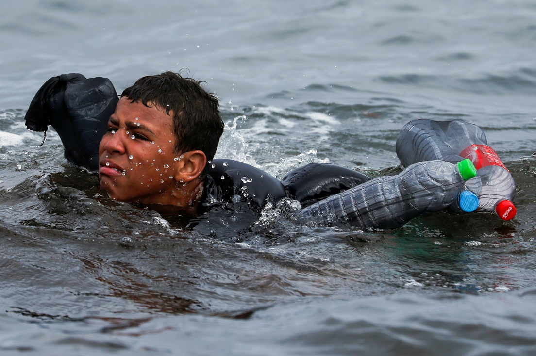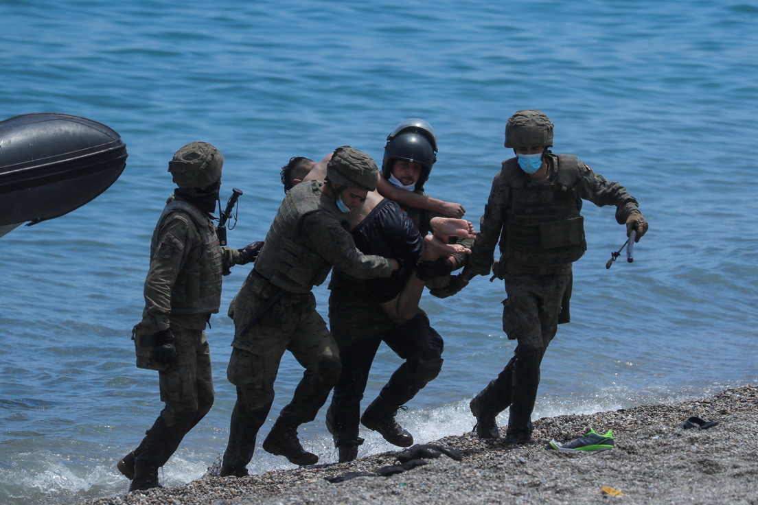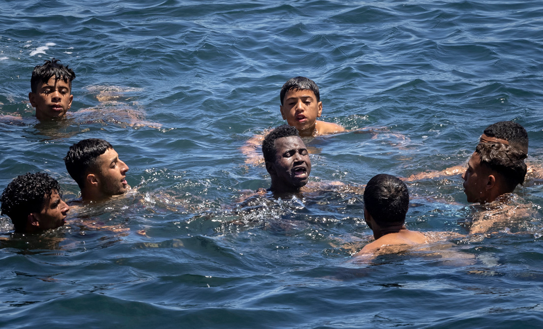 Más de 8.000 personas, ciudadanos marroquíes en su mayoría y entre los que se encontraban al menos 1.500 menores, cruzaron entre el lunes y el martes hasta suelo español a nado, en pequeñas embarcaciones o bordeando a pie los espigones fronterizos de Tarajal y Benzú.