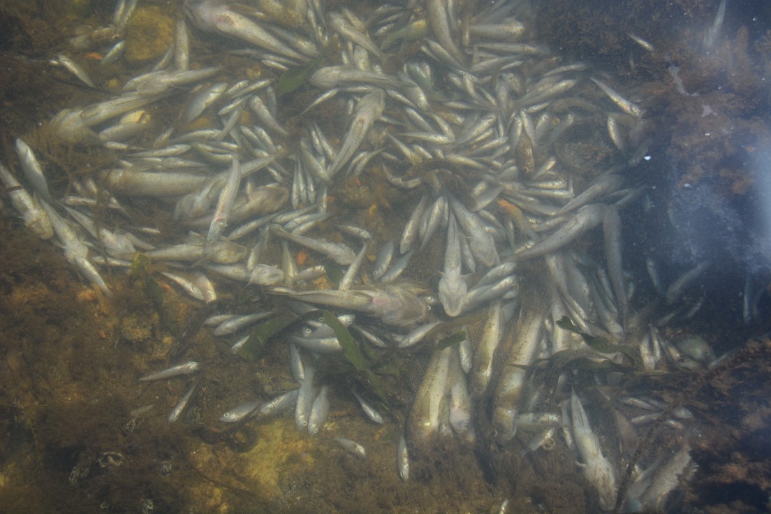 García explica que la mortalidad de peces se está produciendo ahora durante el verano debido a que hay muchas horas de luz y mucho calor. Además, el agua del Mar Menor no es tan salobre como antes puesto que recibe mucha agua dulce con muchos abonos de la agricultura intensiva que impiden que pase la luz. Como resultado se produce menos oxígeno y se producen volúmenes enormes de masa orgánica que se descomponen.