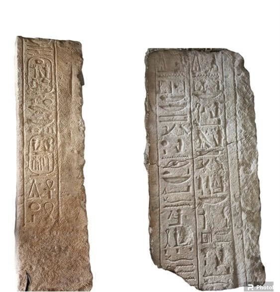Por otro lado, se descubrió el enterramiento de una vaca, animal que en la cultura egipcia era venerada como deidad, además de dos bloques de piedra caliza, uno con inscripciones jeroglíficas de los títulos del faraón Ramsés II y el otro perteneciente a un funcionario llamado Bey.