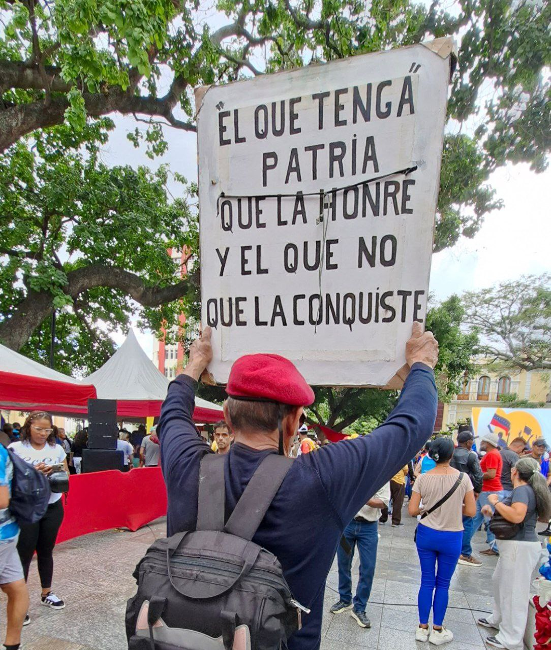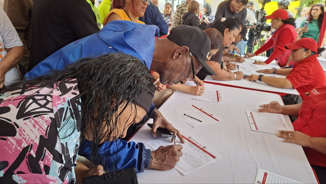 En la jornada del pasado domingo, los caraqueños se trasladaron a la Plaza Bolívar, en el casco histórico de la capital venezolana. El ambiente era festivo, había música, filas de personas esperando su turno para escribir sus datos en las planillas de alistamiento y el colorido de las banderas y afiches.