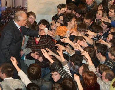 El rector de la Universidad Estatal de Mijaíl Lomonosov, Víctor Sadóvnichi, pasa el vaso de “medovuja” a los estudiantes para celebrar el Dia de Santa Tatiana.
